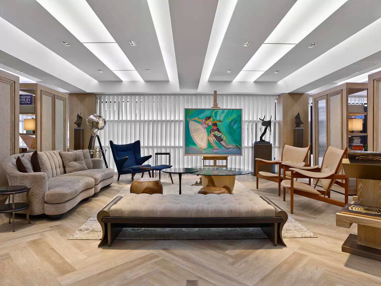 大面積的白色墻面,用黑色線條勾勒出店鋪輪廓。墻壁上掛著各種風(fēng)格的藝術(shù)品和裝飾物,營(yíng)造出時(shí)尚而個(gè)性的氛圍。