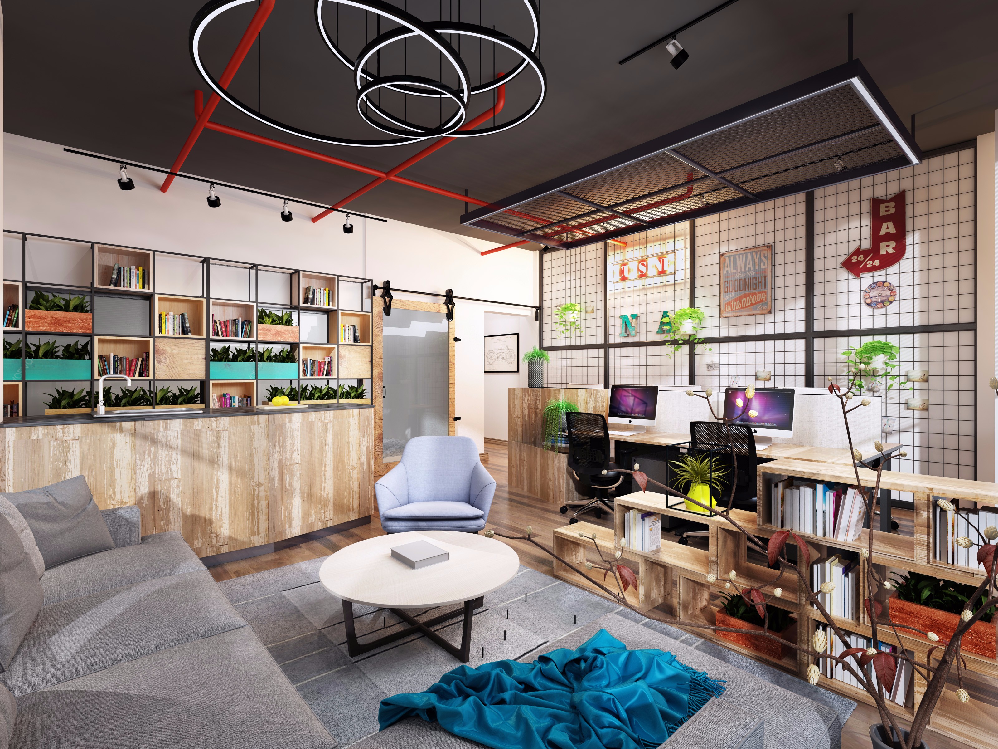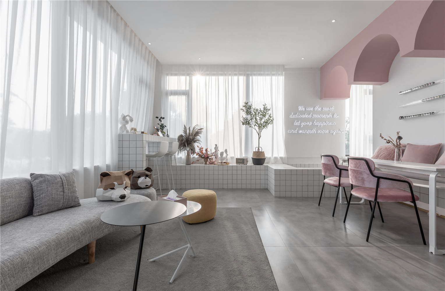 4300平米醫(yī)療公司辦公空間設(shè)計布局,平靜的色彩、柔軟的面料和以類似色調(diào)選擇的彎曲形式提供了所需的寬敞和平靜的氛圍。彎曲的墻壁從入口連續(xù)延伸,增強(qiáng)了空間的連續(xù)性,并通過在墻壁內(nèi)創(chuàng)建的彩色壁龕創(chuàng)建了咖啡店區(qū)域等功能區(qū)域。