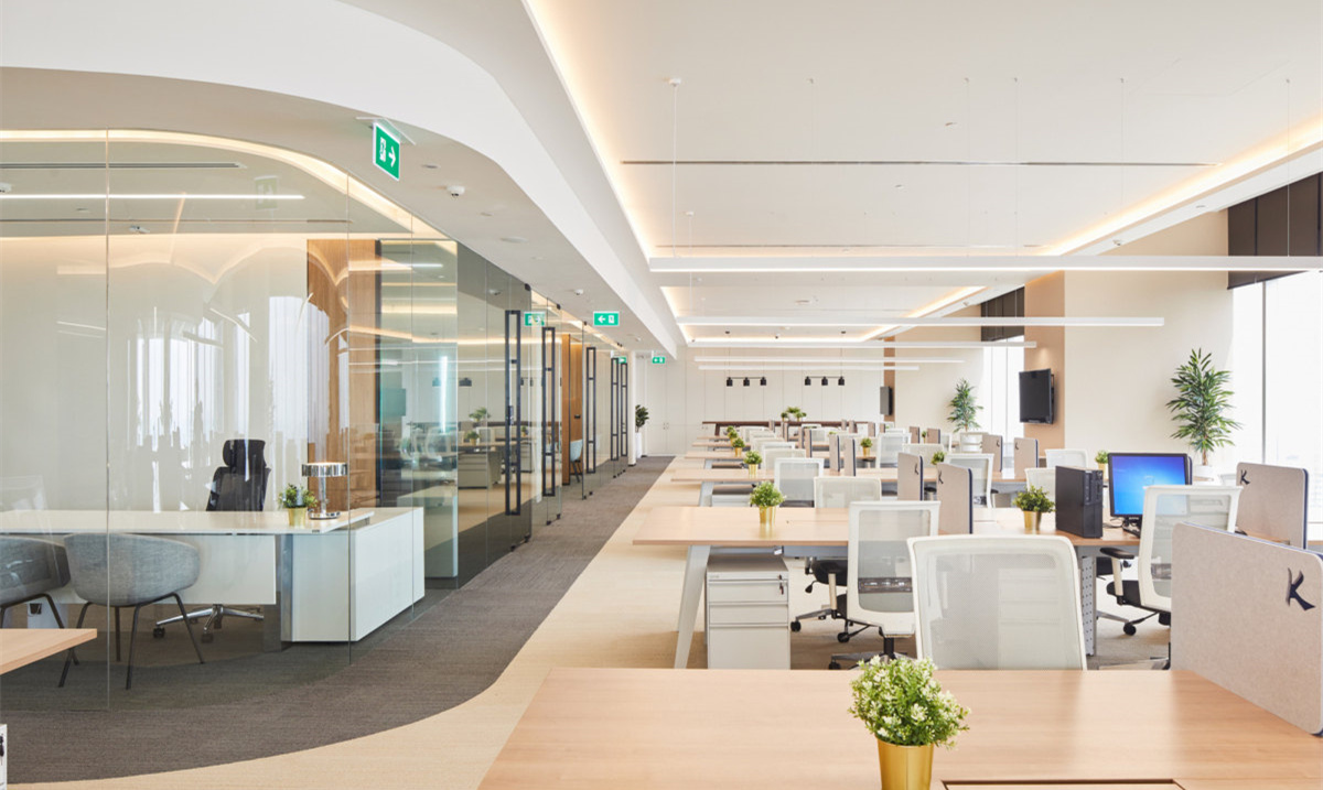 上海辦公裝修設(shè)計公司紙新中式風(fēng)格辦公室設(shè)計方案,新中式風(fēng)格辦公室設(shè)計是一種融合了傳統(tǒng)中式元素和現(xiàn)代風(fēng)格的室內(nèi)設(shè)計風(fēng)格。它以簡約、大氣的線條,精致的細節(jié)處理以及舒適的空間氛圍為特點,營造出一種典雅而富有內(nèi)涵的工作環(huán)境。首先,新中式風(fēng)格辦公室的設(shè)計注重空間的流動性和層次感。設(shè)計師通過合理布局來創(chuàng)造一個寬敞明亮的空間,同時利用屏風(fēng)、窗欞等傳統(tǒng)裝飾元素進行點綴,使整個空間顯得錯落有致。此外,通過運用木質(zhì)地