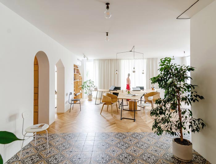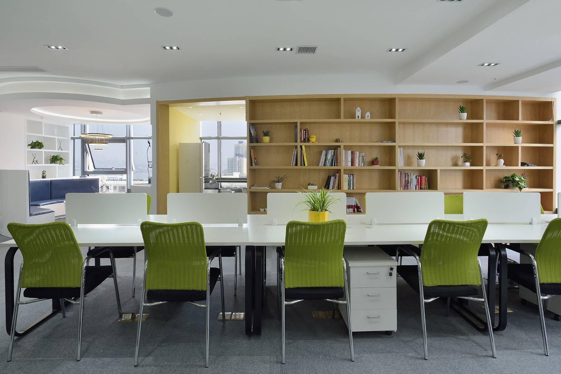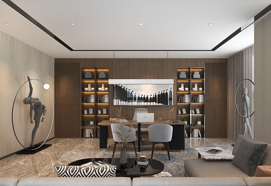 還有一處充滿禪意的休閑角落,木質(zhì)矮桌搭配軟墊,桌上花瓶插著素雅花枝,一旁墻上掛著富有藝術(shù)感的畫作。在忙碌工作之余,員工可在此稍作休憩,或是進(jìn)行輕松的談話,于靜謐中舒緩壓力,汲取靈感。