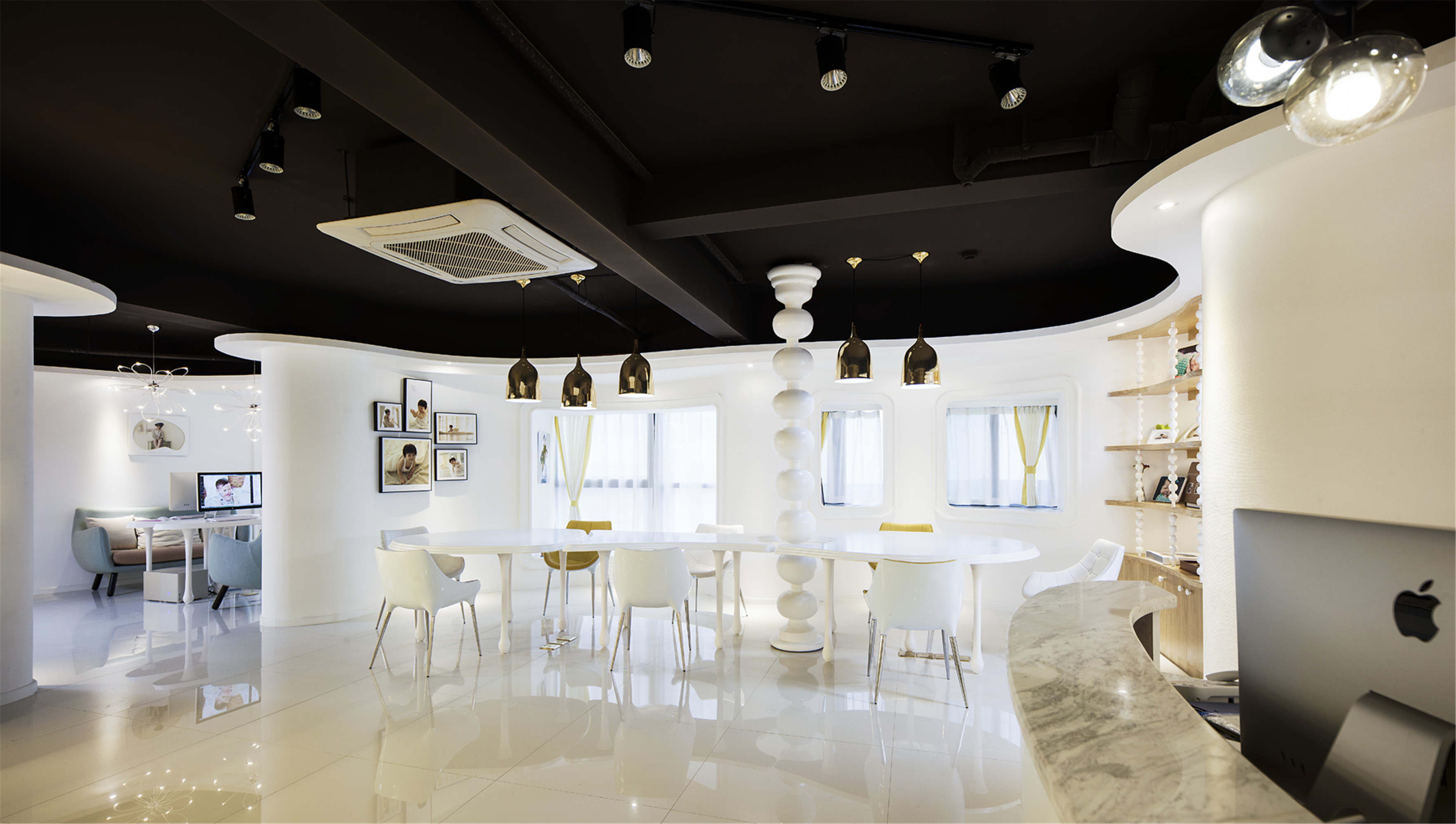 虹口1900生物科技公司辦公場(chǎng)所裝潢設(shè)計(jì),步入這片辦公區(qū)域,首先映入眼簾的是開闊敞亮的辦公區(qū),白色為主調(diào)的空間搭配黑色辦公家具,簡(jiǎn)潔又不失專業(yè)感。上方的長(zhǎng)條燈與裸露的管線設(shè)計(jì),為空間增添了幾分工業(yè)風(fēng)的利落,讓工作氛圍既專注又充滿活力,員工在此能高效推進(jìn)各項(xiàng)事務(wù)。